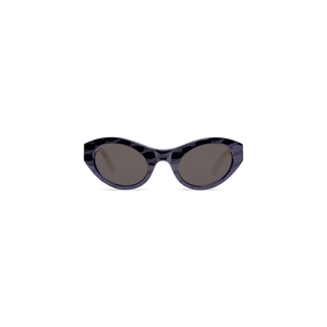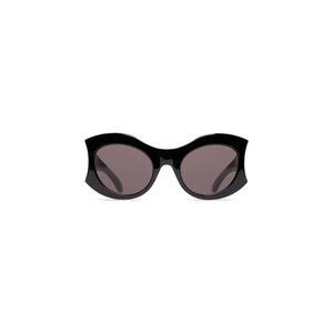 Occhiali Da Sole Hourglass Round in nylon iniettato bio nero con lenti grigie Presentie in numerosi look della Collezione NYC Show Primavera 23 di Balenciaga.